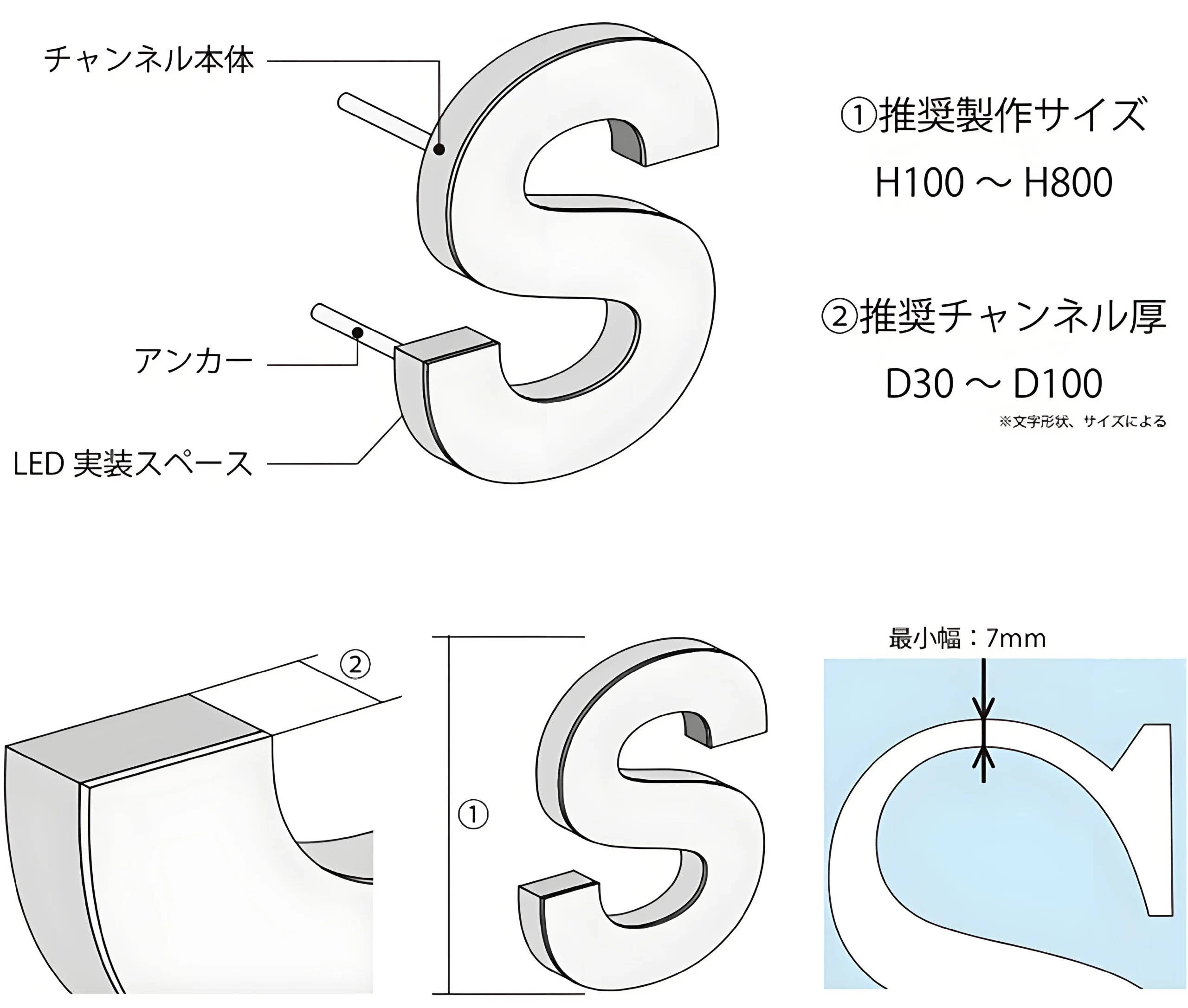 金属バックライトチャンネル文字の特徴