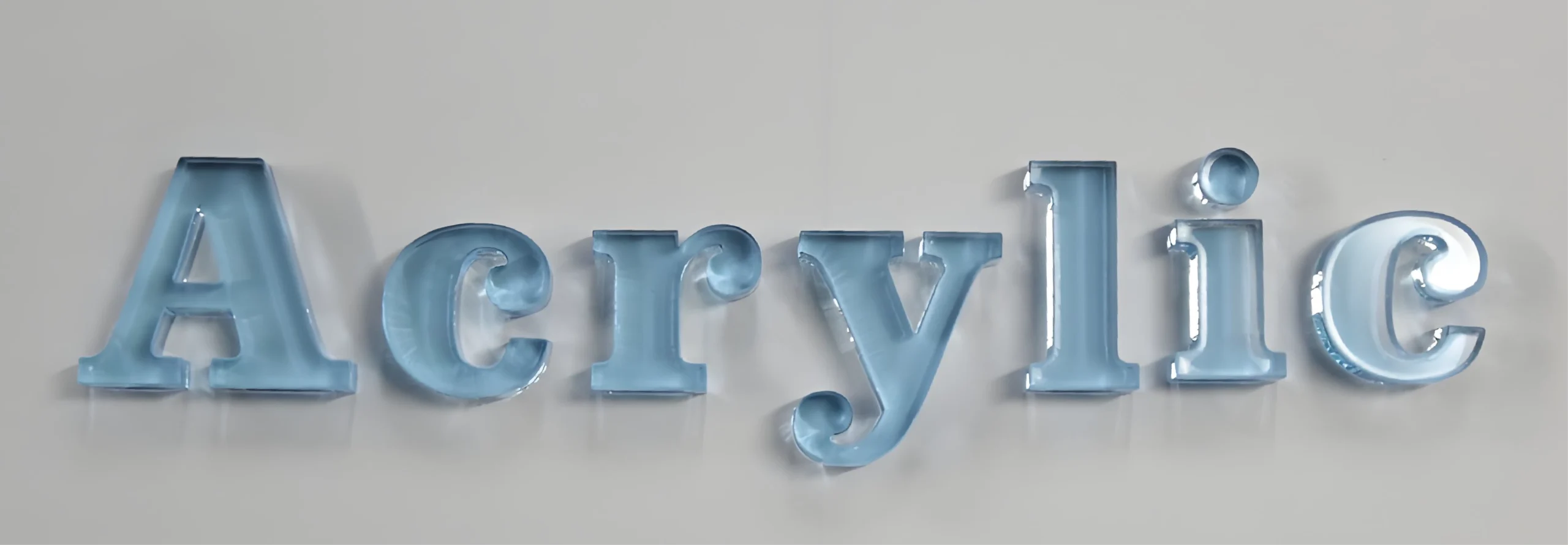 アクリルは多彩な色や透明度を持つ素材で、透明、半透明、色付き、蛍光などさまざまな種類のアクリルを 選択できます。また、厚みも選べるため、デザインに応じて立体感や光の透過具合を調整できます。